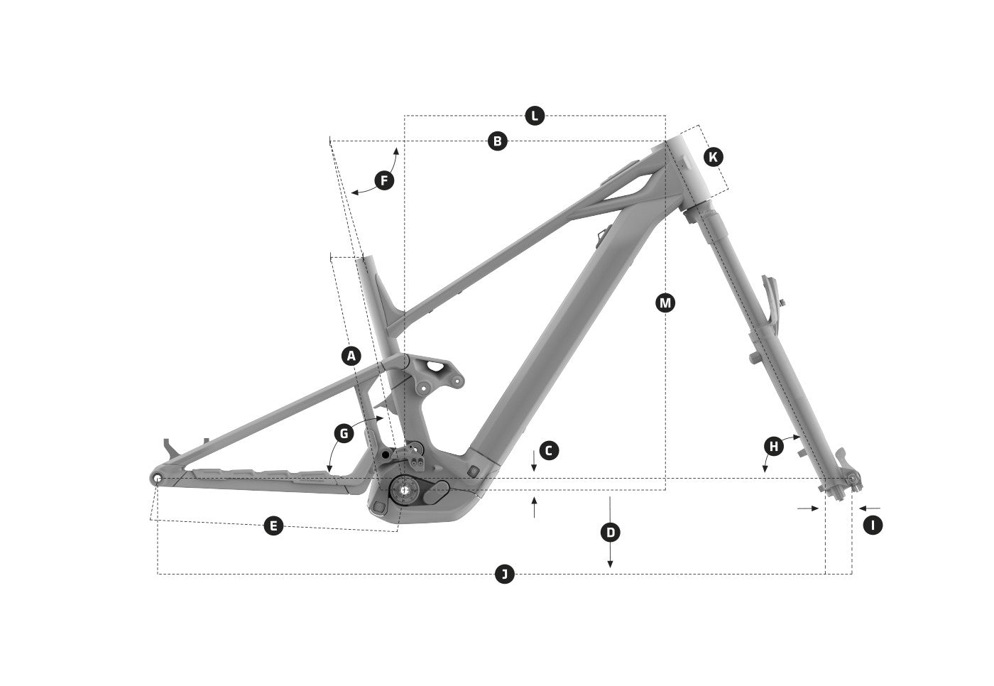 6061 Alloy Stealth Evo, hydroformed tubing, Updated Zero Suspension System, 150mm travel, Forward Geometry, internal battery, Boost 12x148mm rear axle, tapered head tube, one-piece Monoblock upper link, HHG internal cable routing, MAX capacity sealed bearings, oversize 15mm axles, exclusive plastic motor covers.